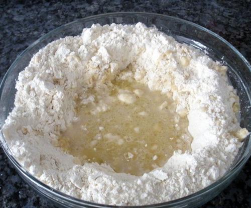 Lembre-se que o trigo é completamente proibido nas dietas para celíacos, de maneira que utilizaremos farinha de milho para fazer nosso pão sem glúten. Também existem outras farinhas sem glúten mas esta é mais fácil de encontrar. Primeiro misture a farinha de milho, o fermento fresco e o sal em um recipiente grande o suficiente. Se não tiver fermento fresco, utilize um pacotinho de fermento em pó sem glúten. Para misturar o fermento fresco com a farinha aconselhamos que dissolva primeiro com um pouco de água quente.