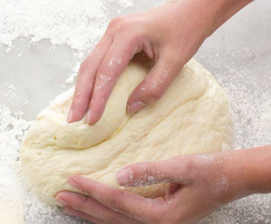 Quando estiver bem misturado, faça um buraco no centro, como um vulcão, e introduza pouco a pouco a água quente e o azeite. Continue mexendo até conseguir uma massa homogênea. Use uma vareta ou as mãos diretamente. Para amassar manualmente o pão para celíacos recomendamos que coloque um pouco de azeite ou farinha nas mãos para que a massa não fique colada nelas.