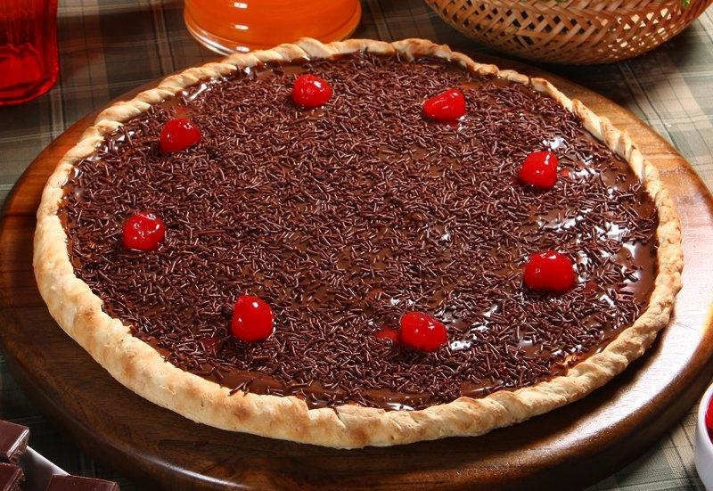 - Decore com chocolate granulado e está pronta a sua pizza de chocolate com morango!