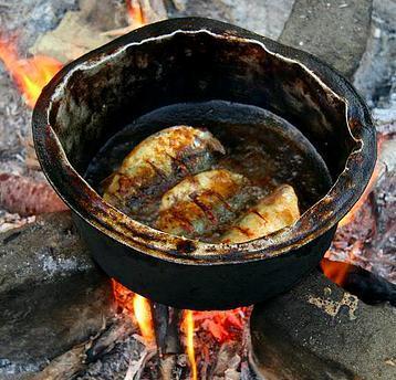 Frita-se da mesma forma como inteiro, mas cortado às fatias grossas. Não é para a fritada de peixe, embora também se possa fazer algum tipo de peixe, como o tamboril, a pescada, etc...
