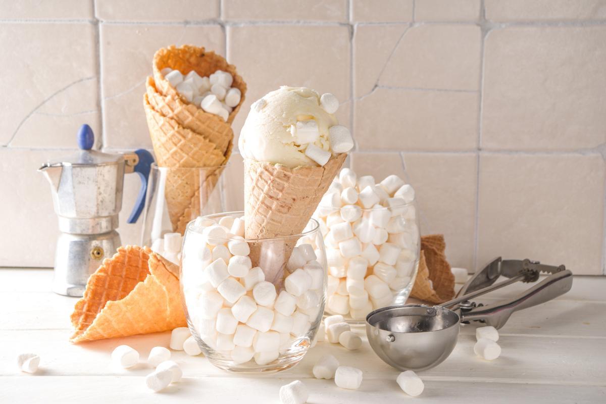 E finalizamos essa lista com um acompanhamento divertido, macio e muito doce. Adicione marshmallows ao seu sorvete para uma combinação única. Você pode usar marshmallows pequenos ou cortá-los em pedaços maiores para obter uma variedade de texturas. Se você quer deixar seu sorvete ainda mais doce, este é o melhor acompanhamento para você.