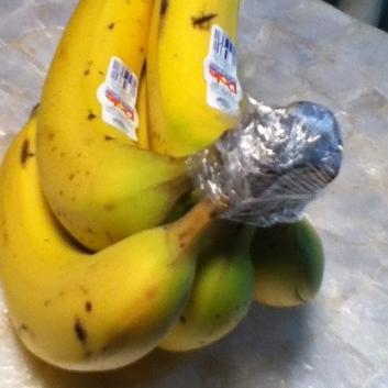 Envolva a ponta das bananas em película transparente, faça 5 ou 6 voltas para que fique bem fechado e o ar não entre. Essa é a zona mais sensível da banana e por onde começa o processo de amadurecimento.