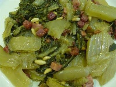 Você pode preparar um refogado de acelgas com pinhões. Um prato delicioso e simples: cozinhe as acelgas e uma vez cozidas, refogue-as com alhos e com os pinhões. Nutritivo, agradável e diferente.
