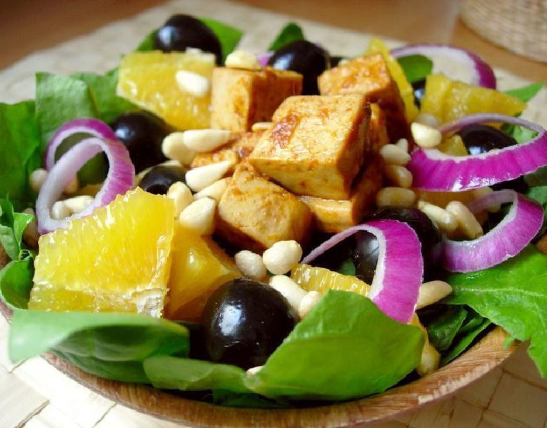 Uma das formas mais simples de cozinhar o tofu é marinado. Para fazer o tofu marinado escolha o aroma que mais goste, seja de molho teriyaki, molho de soja, etc. Primeiro seque bem o tofu, para isso envolva-o em papel absorvente e retire o excesso de água. Feito isto, corte em rodelas ou cubos, mas que não superem um centímetro de espessura, e reserve em um recipiente que não seja redondo. Agora, rale um pouco de gengibre e dois dentes de alho, lave uma cebola e pique-a bem. Em uma tigela ou copo, misture o suco de um limão, os alhos e o gengibre ralados, a cebolinha picada e o molho que tiver escolhido. Depois, cubra o tofu com esta mistura, faça-o por camadas para que fique bem impregnado, e o reserve no frigorífico durante uma hora, com sal e pimenta a gosto. Passado este tempo, cozinhe na chapa, com um pouco de azeite de girassol e o suco da maceração. Deve ficar bem dourado e crocante. A maneira mais popular de tomar o tofu marinado é em saladas. Prepare a salada de sua preferência e acrescente os cubos ou rodelas de tofu macerado, pode fazer uma salada de macarrão, de cogumelos, etc.