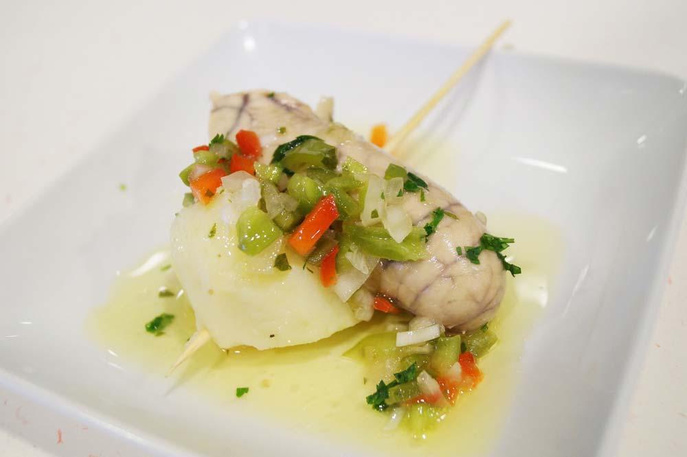 Vamos começar com uma receita de ovas de merluza com molho vinagrete de hortaliças. Para preparar este prato precisamos de:
