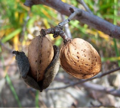 À medida que o fruto for amadurecendo, a casca exterior da amêndoa anteriormente verde irá secando e mudando sua cor para marrom ou cinza. Caso não recolhamos o fruto, esta casca continuará secando e inclusive chegará a cair e a deixar à vista a casca dura da amêndoa. Se o que queremos é descascar as amêndoas neste momento, poderemos tirar a casca facilmente com a mão.