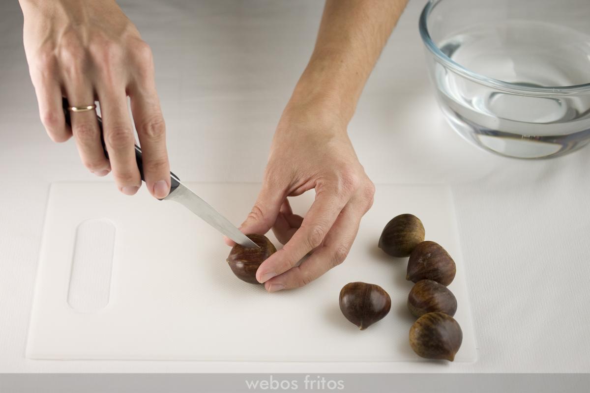 Pode repetir este mesmo método, mas fervendo um pouco as castanhas em uma panela com água e sal durante 2 minutos. Em seguida, retire-as da panela e cubra-as com água fria.