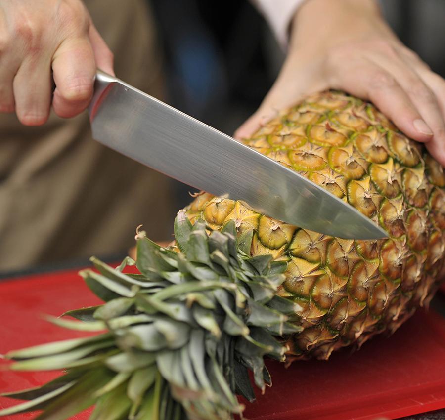 É importantíssimo escolher o melhor abacaxi durante a compra para que seja mais fácil de descascar depois. O ideal é escolher um abacaxi maduro, com um tom alaranjado e folhas verde escuro.