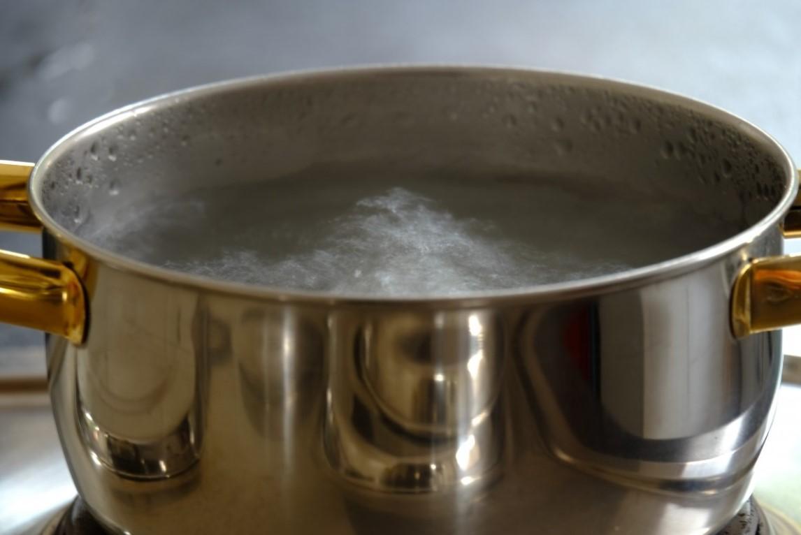 - Pegue uma panela de um certo tamanho ou peso e encha-a com água morna.
