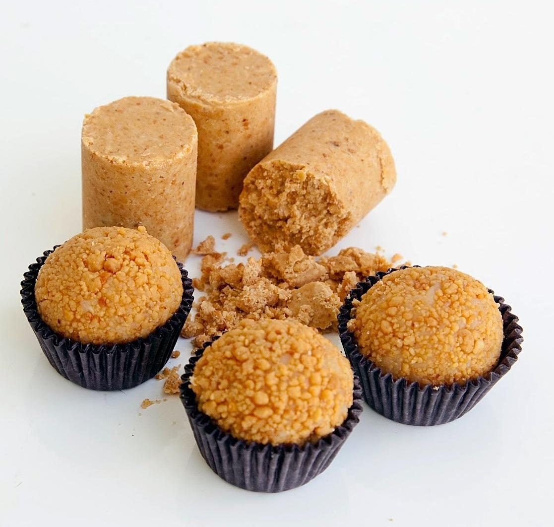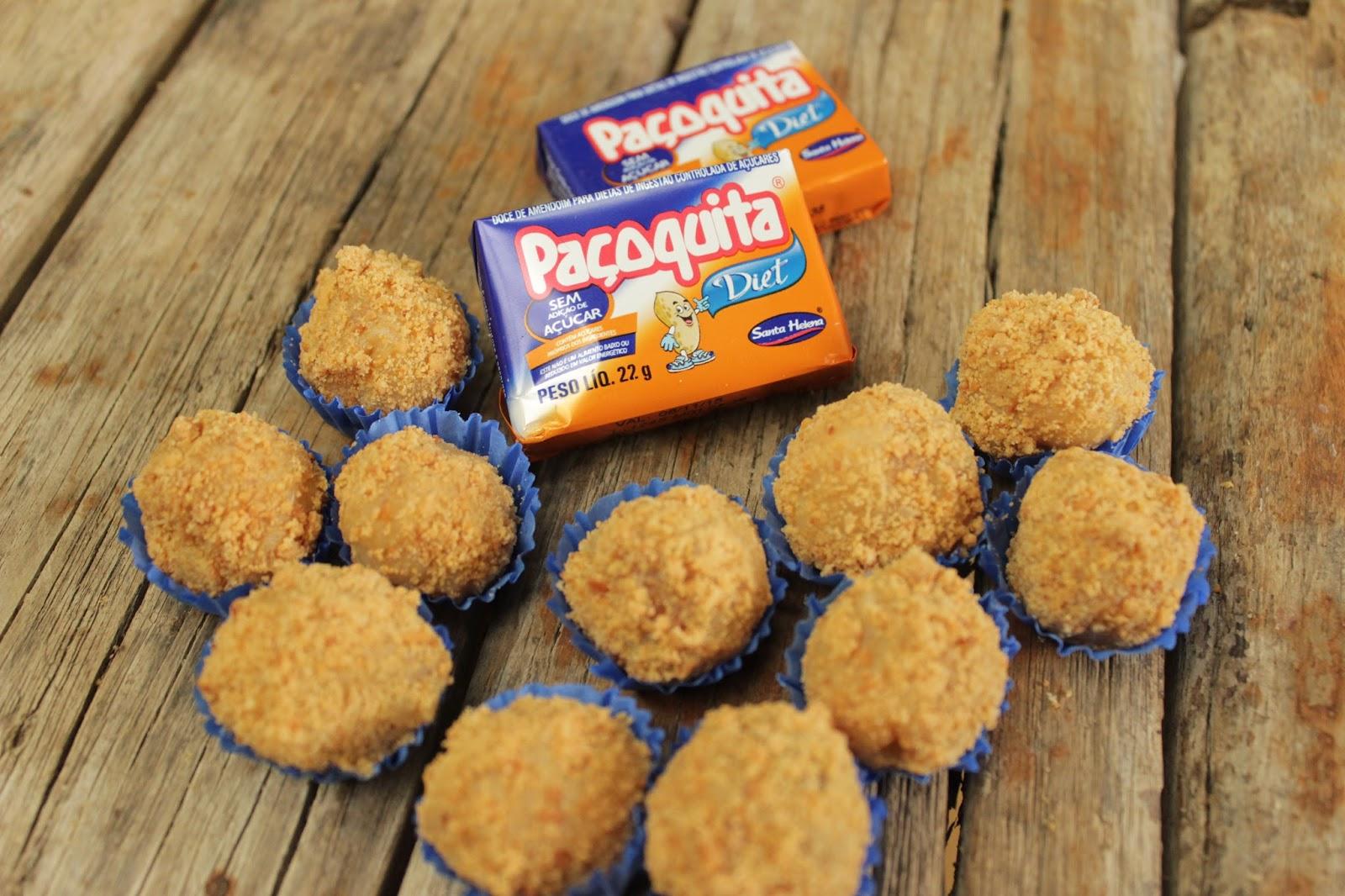 Para fazer a cobertura, triture as paçocas e o amendoim usando as mãos. Misture tudo e passe as bolinhas no preparado, até ficarem completamente cobertas. Está pronto!