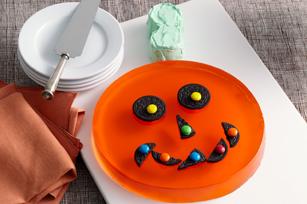 Outra ideia original que pode fazer com gelatina é uma cabeça de abóbora. Só tem de fazer gelatina de sabor a laranja, seguindo as instruções do nosso artigo e colocar a mistura em um recipiente redondo e baixo. Leve à geladeira e desenforme a gelatina. Depois com bolachas oreo faça os olhos, o nariz e boca e se desejar decore com M&M's. E terá uma magnífica cabeça de abóbora feita de gelatina!