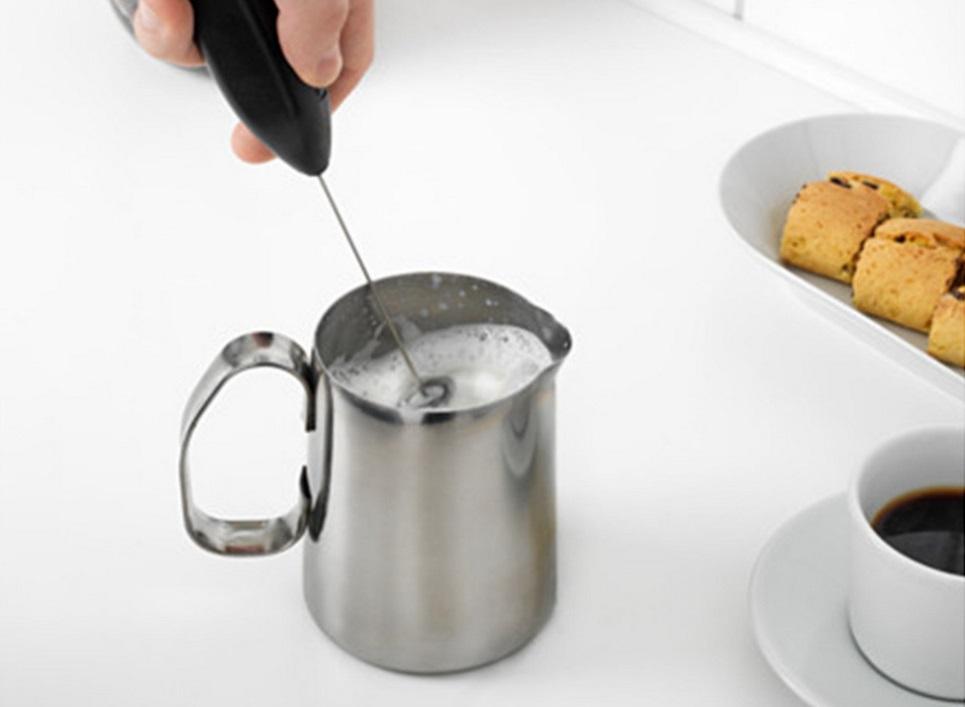 De seguida, use o batedor elétrico no leite para criar a micro espuma necessária para fazer os desenhos de latte art. Isso pode demorar alguns minutos.
