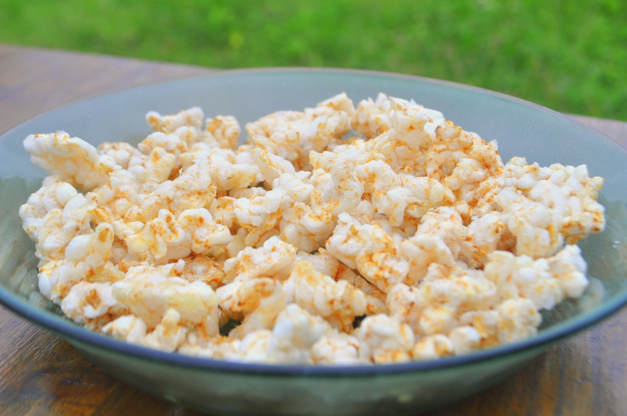 - Coloque a pipoca de arroz num prato, tempere e sirva.
