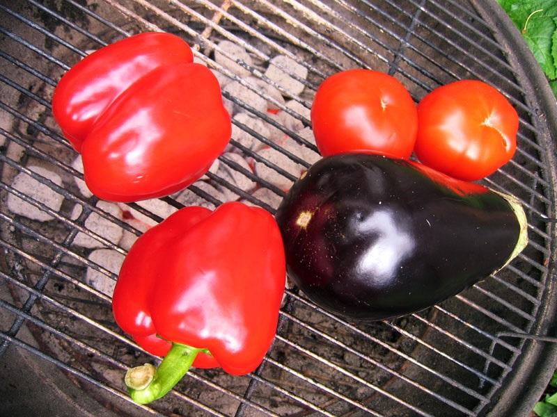 Os pimentões são umas das escolhas mais populares em churrascos de legumes. Levam mais tempo a cozinhar do que a maior parte dos outros vegetais, mas possuem um sabor bem característico na churrasqueira. Coloque-os inteiros na grelha e vire sempre que a pele ficar com um tom marrom. Quando estiver uniforme, retire da grelha e deixe esfriar. Remova a pele e as sementes e corte em tirinhas, misturando com azeite, hortelã, pimenta-do-reino e alho triturado.