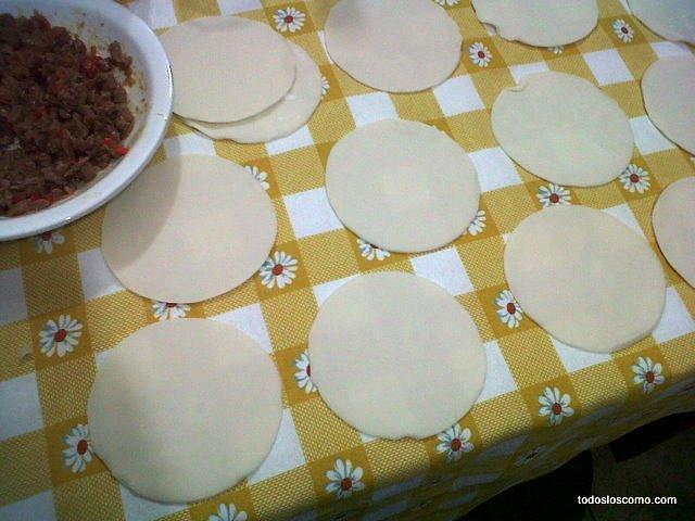 A função da borda é que a empanada fique bem fechada, não se abra enquanto estiver cozinhando e mantenha o suco da carne. Por isso, é fundamental realizá-lo corretamente. O ideal para fazer as empanadas é que o recheio esteja bem frio (recém tirado da geladeira), dessa forma estará mais saborosa ao comer. Para começar, pomos os discos de massa de empanadas sobre a mesa.