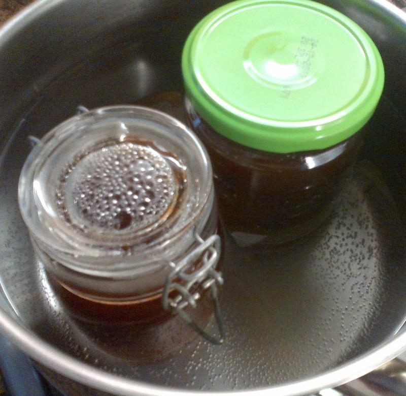 De igual forma, depois de inserir o conteúdo no interior dos frascos até enchê-los completamente, há quem os coloque tampados numa panela cheia de água e deixe ferver por cerca de 15 minutos. No final desliga-se o fogo e deixam-se os frascos arrefecer na água para, em seguida, os guardar em local fresco e seco.