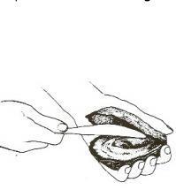 Introduza a faca especial para abrir frutos do mar, apenas meio centímetro.