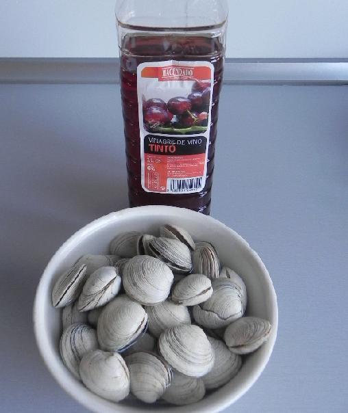 Outra boa solução para que as amêijoas soltem toda a areia é colocá-las em água com vinagre. Será necessário que as deixe submergidas durante algum tempo, uma meia hora será suficiente para eliminar a areia. Em seguida, lave-as bem sob a torneira.