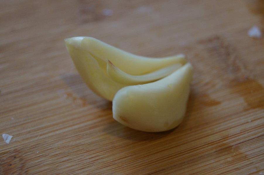 Também pode descascar os dentes de alho, cortar ao meio e deixar de molho em água fria durante toda a noite.