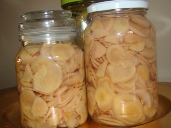 Outra forma de conservar o gengibre é descascando e cortando em pedaços finos, que pode cortar com o descascador de batatas e colocar em um frasco de vidro coberto de azeite de oliva ou xerez.