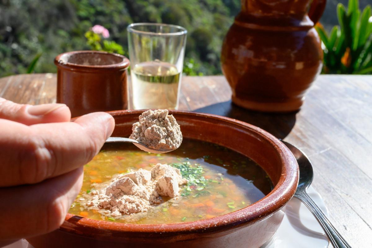 - Gofio escaldado: o gofio é adicionado a caldo de carne ou peixe, com cebola, sal e, às vezes, molho. É um prato típico da gastronomia canária, substancioso e delicioso;