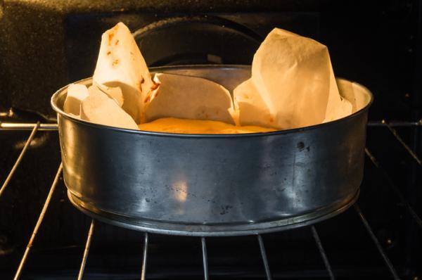- Papel alumínio: colocar papel alumínio por cima da massa do bolo faz com que ele asse por mais tempo e, já que funciona como uma capa protetora, evita que ele fique queimado por fora enquanto cozinha por dentro.