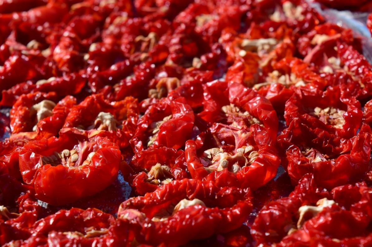- Vegetais: espargos verdes e brancos, cebola, tomate (especialmente tomate seco), brócolis, ervilhas, cogumelos e shiitake secos.