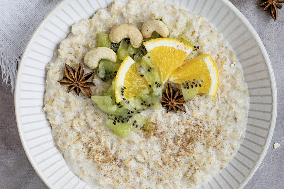 - Aveia com canela, maçã, uvas e bebida vegetal