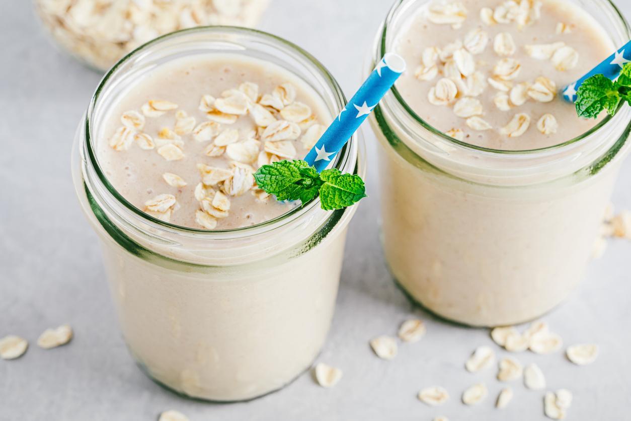 - Misture 375 ml de leite de aveia, de arroz ou de soja com 120 gramas de flocos de aveia.