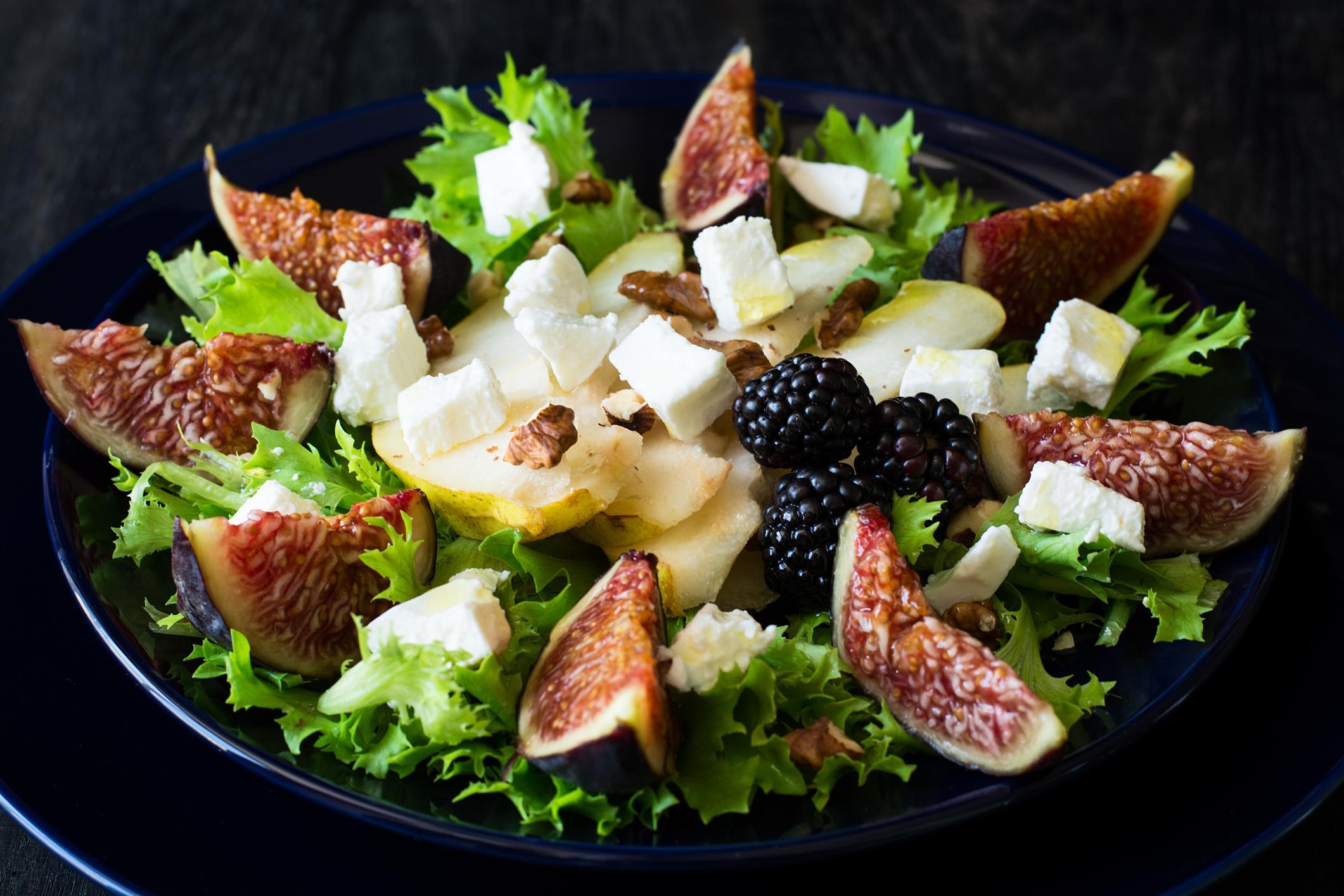 6. Salada de queijo de cabra com figo e mel