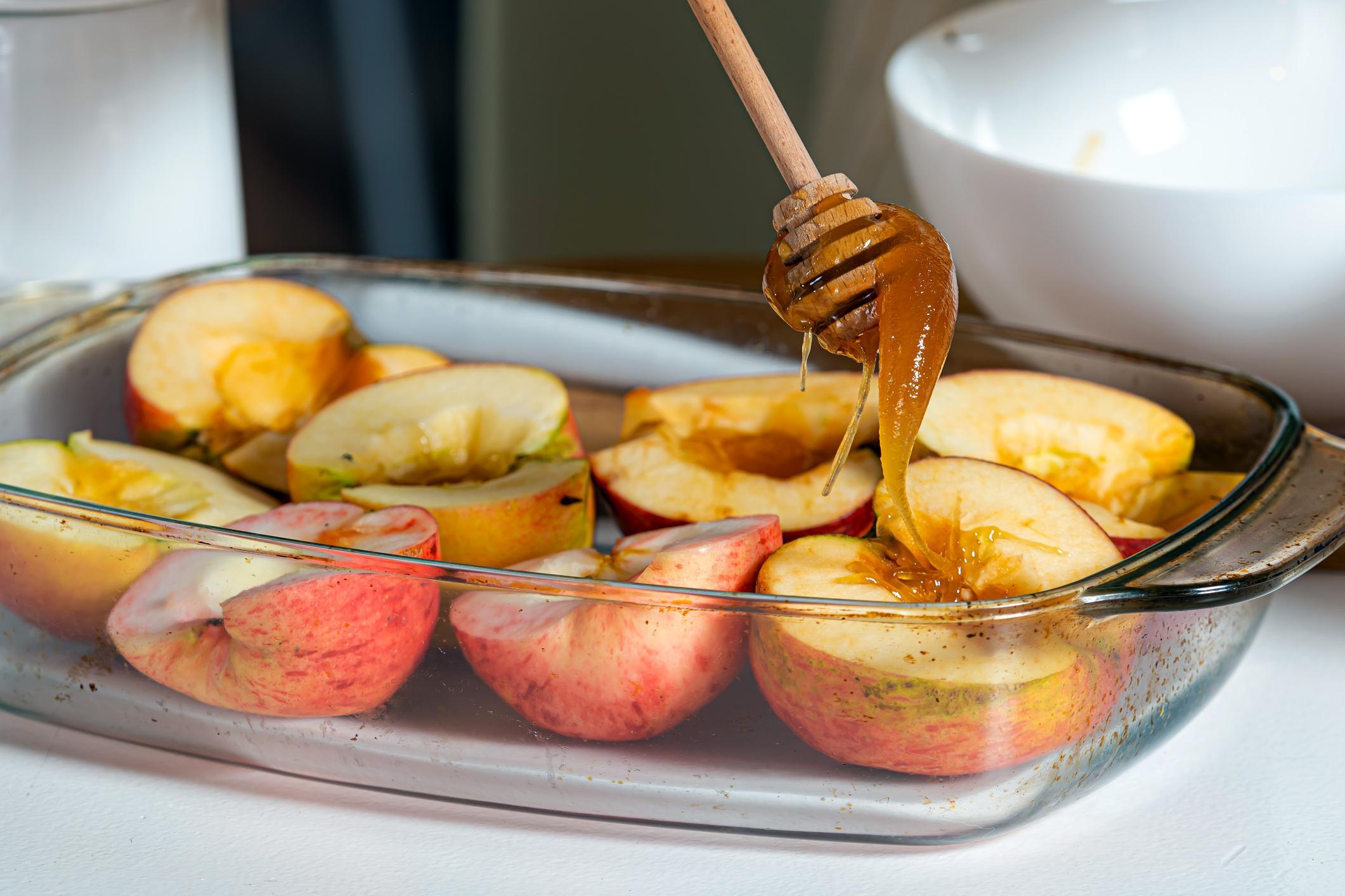 Essa é a melhor sobremesas com mel! Coma enquanto as maçãs ainda estiverem quentes.