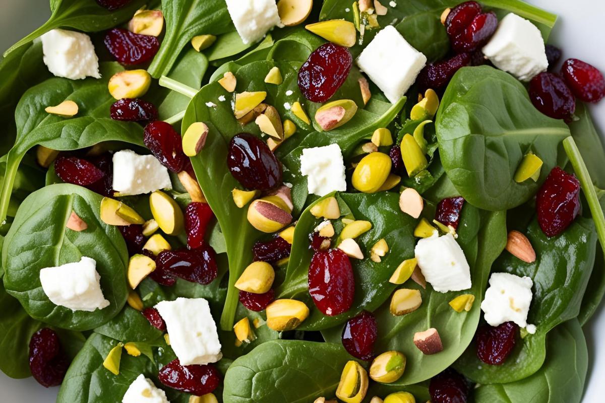 Essa salada é perfeita para quem busca algo fresco e nutritivo. Combina espinafre fresco com queijo de cabra cremoso, cranberries secas e um punhado de pistaches torrados e picados. O toque crocante do pistache equilibra a maciez do queijo e o sabor ácido do vinagrete balsâmico. É ideal para acompanhar carnes ou servir como um prato principal leve. Além disso, seu colorido e textura a tornam uma opção atraente para qualquer refeição. Você também pode ajustar os ingredientes ao seu gosto.