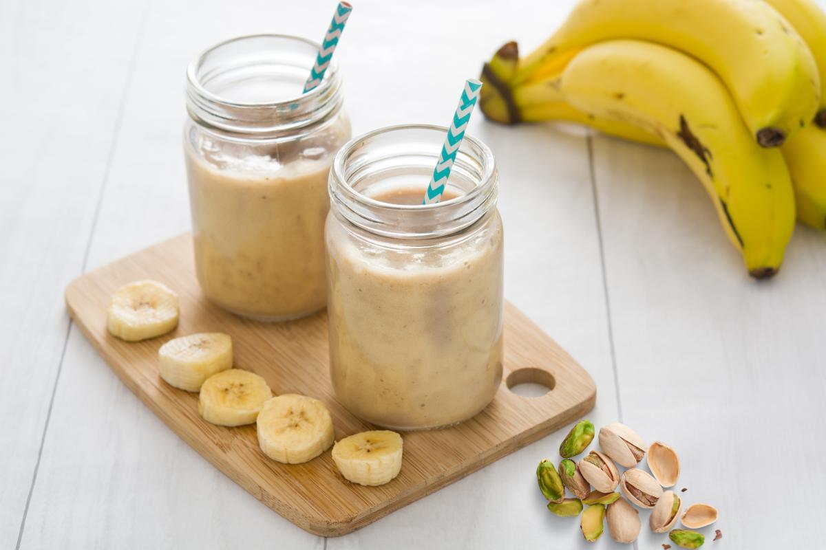 Para um café da manhã rápido ou um lanche saudável, o smoothie de banana e pistache é uma ótima pedida. Bata banana madura, leite (pode ser vegetal), um punhado de pistaches e um pouco de mel. O resultado é um shake cremoso, muito nutritivo e com sabor delicioso. Se quiser, adicione aveia para dar maior saciedade. Uma ótima opção para começar o dia com energia!