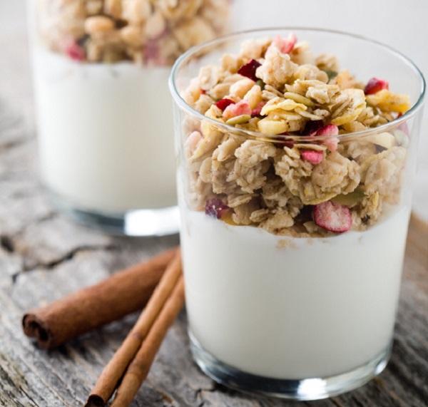 A aveia é um cereal muito completo e benéfico para a saúde, além de uma ótima opção para incluir mais ferro na alimentação diária. Pode fazer parte do seu café da manhã habitual para começar o dia cheio de energia, e uma simples e saudável receita é adicionar flocos de aveia em um copo de leite vegetal (soja, amêndoas, de arroz, etc.) e adicionar, se quiser, alguns pedaços de frutas. Se não costuma beber leite ao seu café da manhã, pense que a aveia é um ingrediente que também pode acompanhar com um iogurte natural ou inclusive fazer vitaminas com ela. Convidamos você a consultar o artigo Como comer aveia para ver diferentes alternativas.