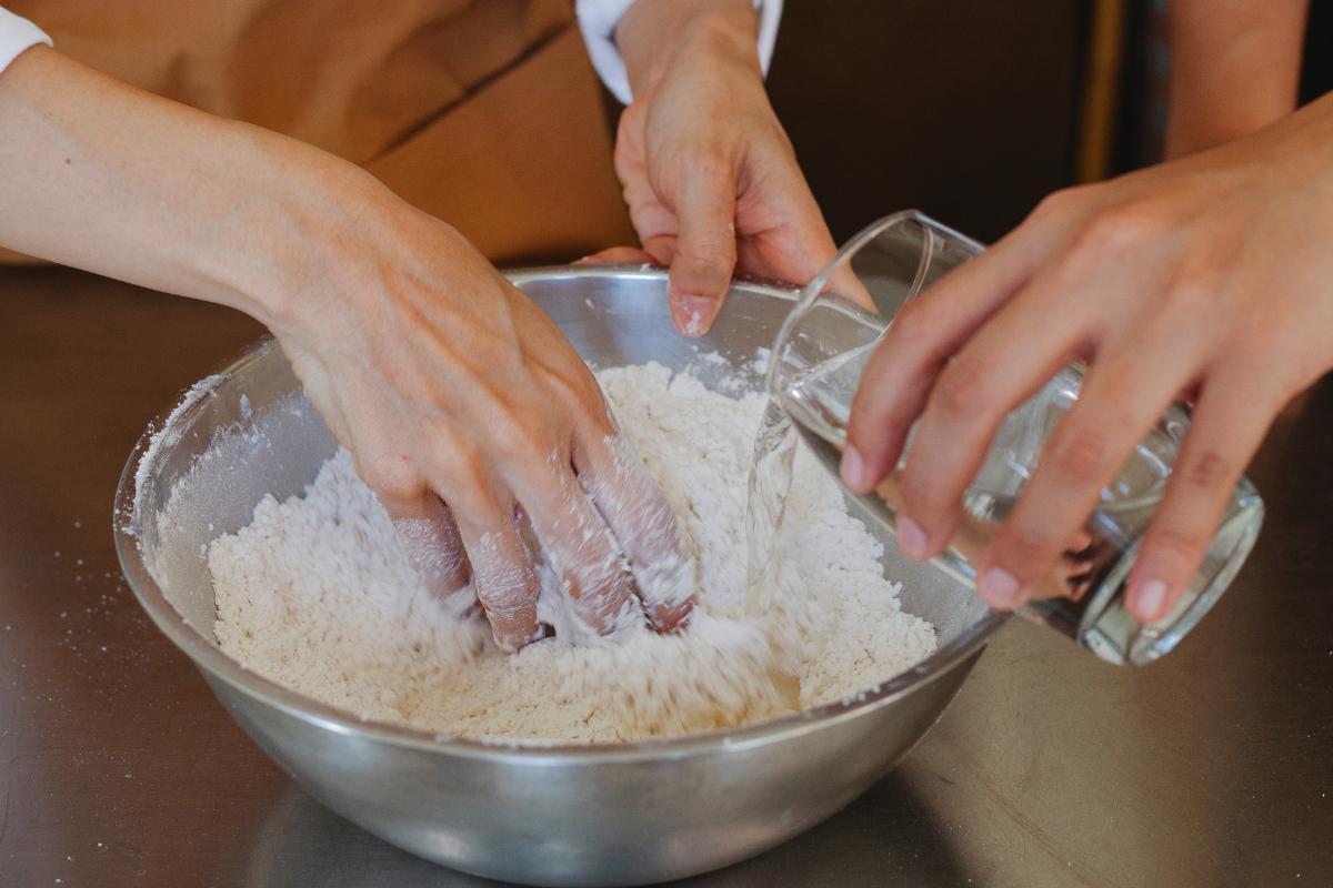 A mistura resultante de uma parte de farinha e outra de água equivale a um ovo. Pode ser farinha de trigo ou outras sem glúten, como de arroz, grão-de-bico ou milho. Essa preparação serve para fazer empanados e frituras sem a necessidade de adicionar ovo. Mais um exemplo de substitutos do ovo na cozinha!