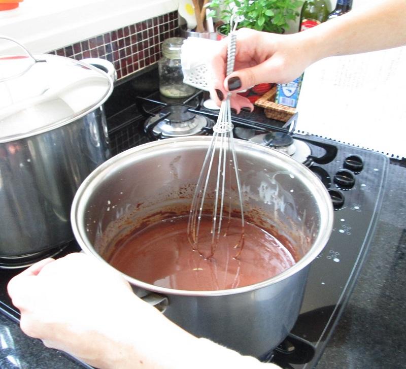 Mexa de preferência com um batedor de arame e, quando a mistura começar a ferver, conte 4 minutos sem parar de mexer.
