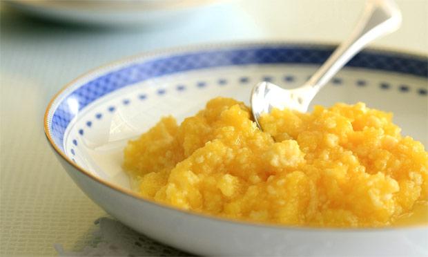 Quando a sua ambrosia estiver com uma consistência mais grossa e esponjosa é hora de retirá-la do fogo. Deve colocá-la em tacinhas e deixá-las arrefecer, quando o doce estiver à temperatura ambiente, leve à geladeira para que na altura de servir este doce esteja bem fresco.