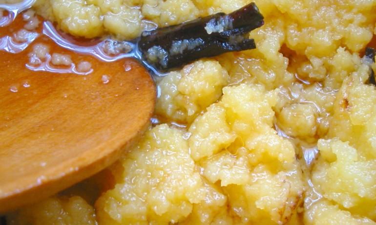 O leite vai borbulhar e você deve mexer bem até o açúcar se soltar do fundo da panela, quando o açúcar se misturar com o leite você deve juntar raspas de um limão, o sumo do limão, a essência de baunilha e os ovos, mas antes de juntar os ovos deve estourar as gemas, não bata os ovos, basta apenas furar as gemas.