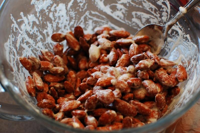 Coloque esta espuma em uma tigela e adicione as amêndoas e vá misturando delicadamente para envolvê-las com a mistura.