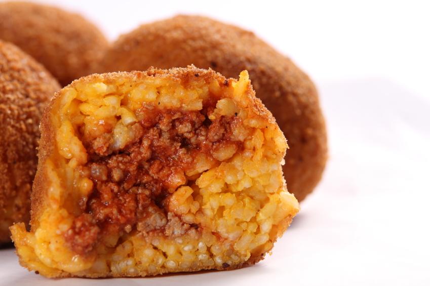 Dica: Recomendo que você use uma escumadeira para colocar e retirar os bolinhos arancini italianos do óleo para evitar queimaduras!