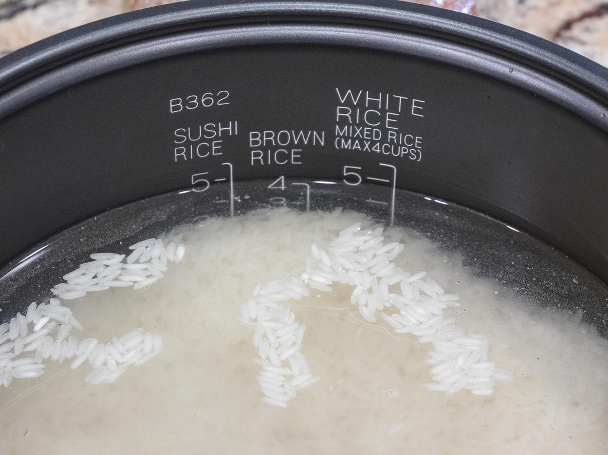 Tempere o arroz com sal a gosto, ou se preferir, pode utilizar outro tempero a seu gosto como óleo ou manteiga. É importante se certificar que todos os grãos de arroz estejam dentro da água da panela elétrica. Se você gosta, também pode deixar uma folhinha de louro junto com o arroz.