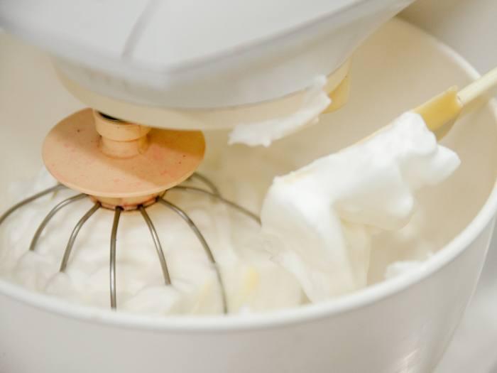 Para começar a fazer o bem casado, você deverá separar as claras das gemas. Depois bata as claras em ponto de neve usando uma batedeira na velocidade mais alta. Você saberá que as claras estão em ponto de neve quando ao virar a tigela elas não caírem.