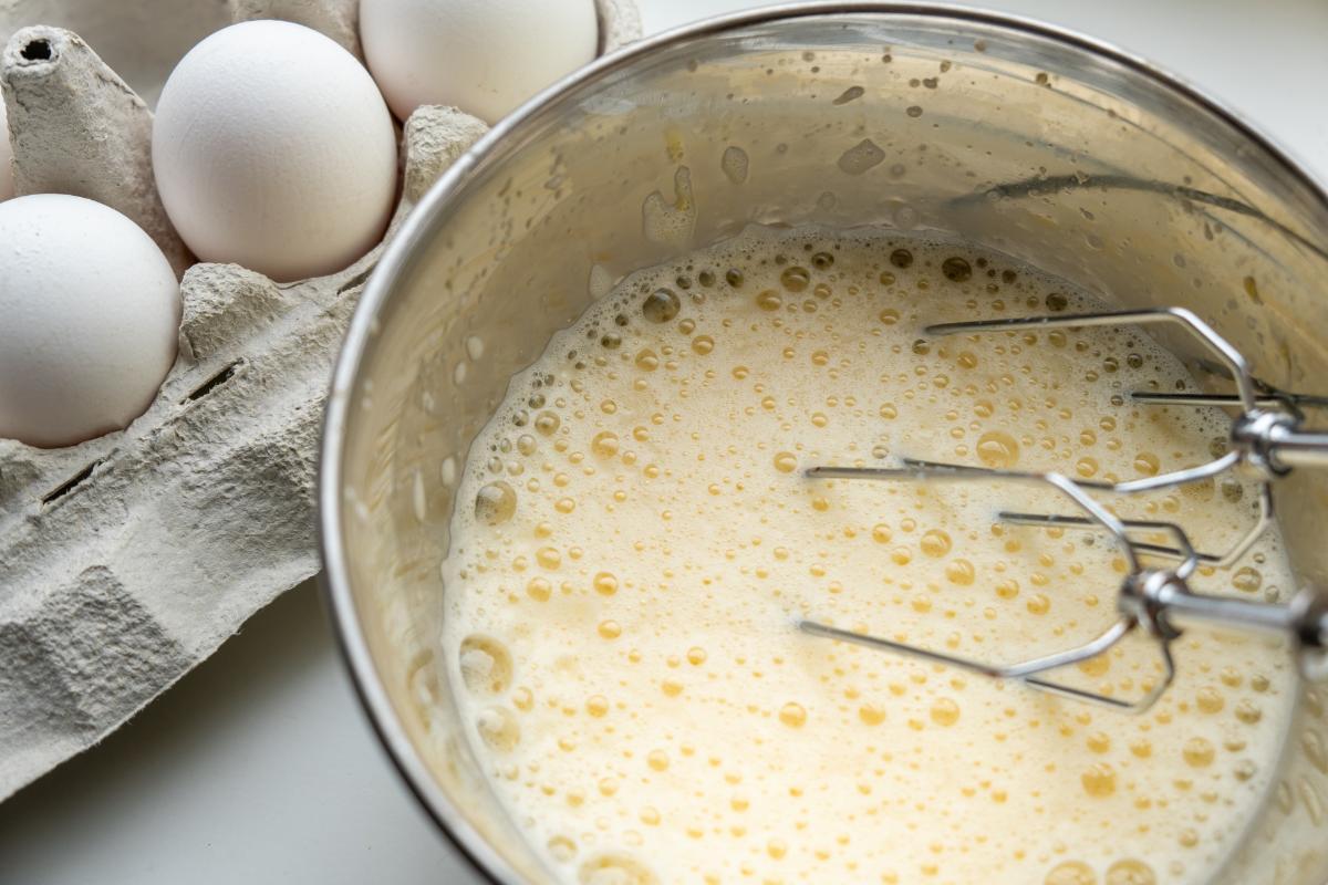 Adicione o ovo e a essência de baunilha à mistura. Bata novamente até que tudo esteja completamente integrado. A baunilha dá um aroma bem natalino, mas você pode substituí-la por amêndoa, laranja ou canela, se preferir.