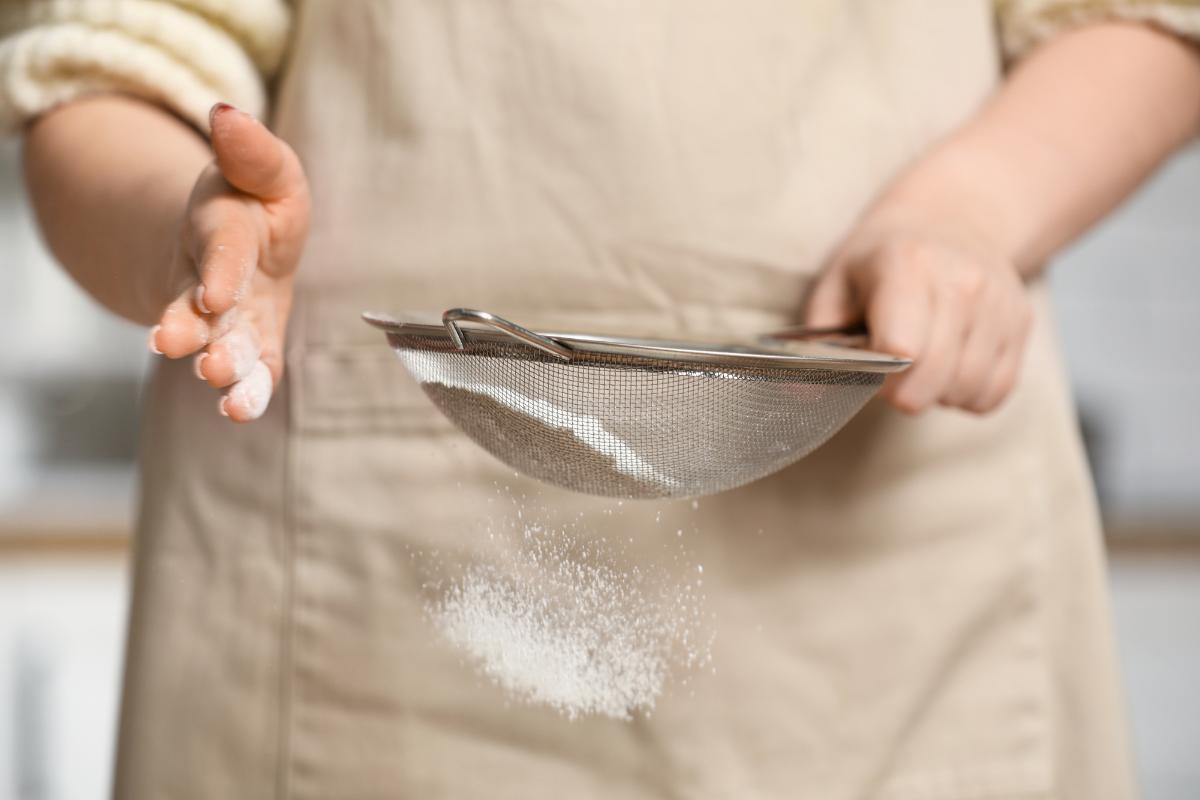 Acrescente a farinha peneirada junto com a pitada de sal.