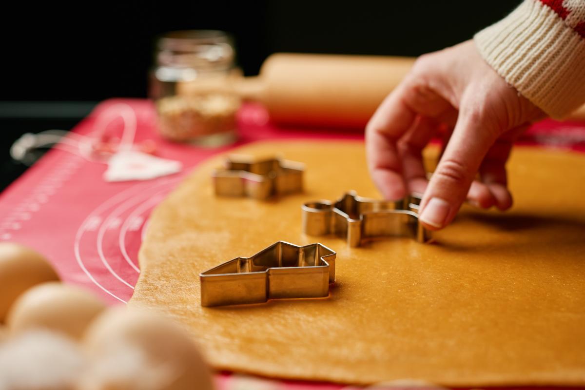 Use cortadores para dar forma: estrelas, árvores, flocos de neve, corações… Pressione a massa com eles e coloque as peças em uma assadeira com papel manteiga.