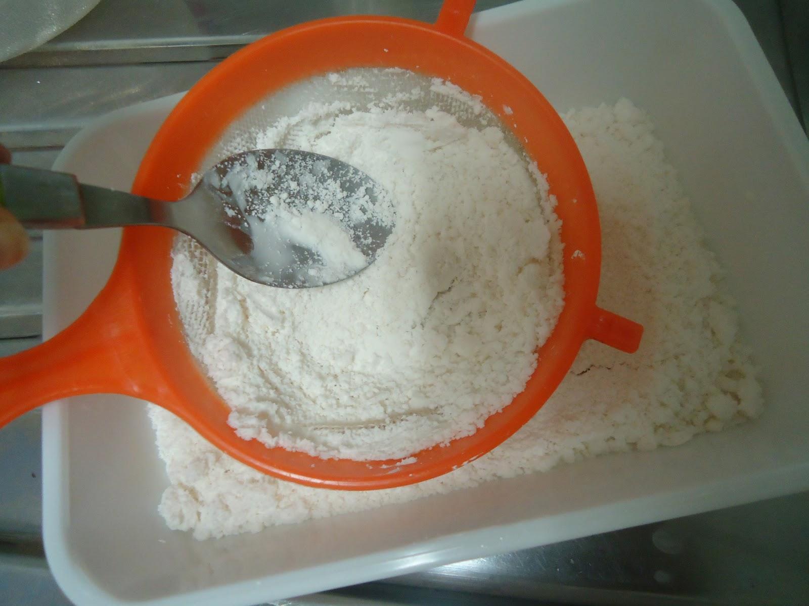 Para fazer os seus biscoitos de gengibre, comece por peneirar todos os ingredientes secos à excepção do açúcar, ou seja, a farinha, o gengibre, o achocolatado, o bicarbonato, o cravo e a canela. Misture tudo bem e reserve.
