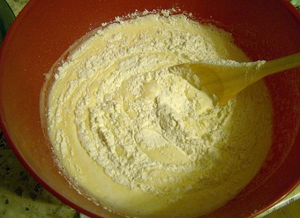 Agora é a hora de acrescentar a farinha e, para isso, aconselhamos peneirá-la e ir acrescentando-a pouco a pouco para evitar a formação de grumos na massa. Acrescente também uma colher de chá de fermento (pode ser tipo Royal), assim seus biscoitos de nata ficarão mais grossos e esponjosos. Mexa até obter uma massa homogênea e moldável. Cubra o recipiente com papel filme e deixe que a massa repouse na geladeira durante 15 ou 20 minutos.