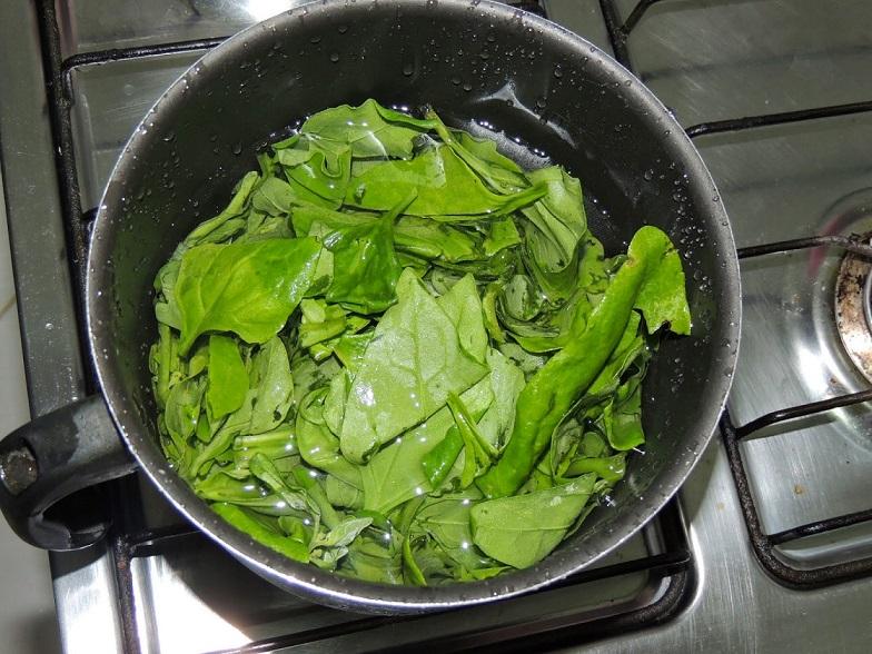 Para fazer os seus bolinhos de espinafre, a primeira coisa a fazer é lavar bem e retirar as folhas do espinafre. Se quiser pode não utilizar os talos do espinafre para fazer os bolinhos. Agora encha uma panela com água suficiente para cobrir os espinafres e deixe ferver. Quando estiver a ferver, adicione o espinafre e deixe cozinhar por cerca de um minuto. Depois escorra bem a água e pique o espinafre em pedaços bem pequenos.