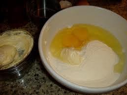 De seguida, bata a margarina com o açúcar e junte os ovos, o leite e a raspa de laranja. Mexa muito bem até que fique uma mistura homogênea.