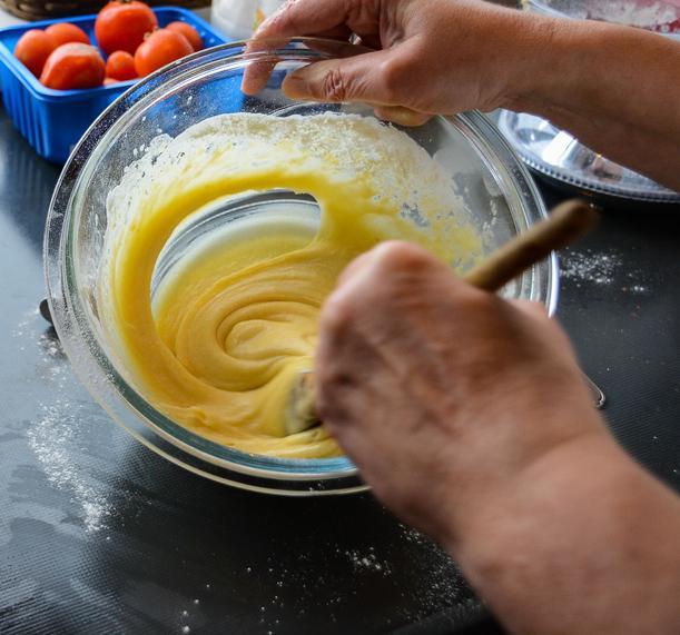 Incorpore os ovos aos poucos, sem deixar de bater. Coloque um por um, e até que você termine de misturar o último, não adicione o seguinte.
